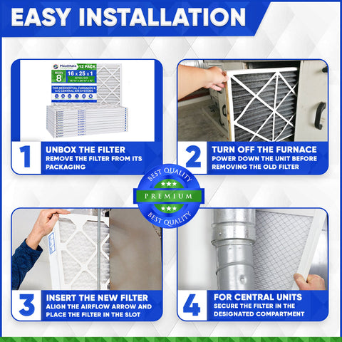 16x25x1 MERV 8 Furnace & A/C Air Filter, Pleated Material. Case of 12 Made in Canada by FurnaceFilters.Ca