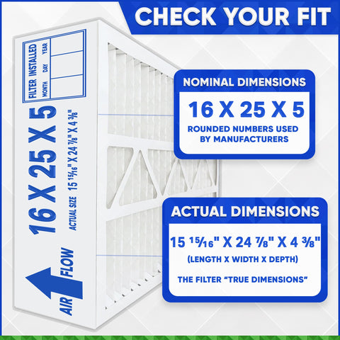 Honeywell 16x25x4 MERV 8 Model # FC100A1029 Generic. Actual Size 15 15/16" x 24 7/8" x 4 3/8." Case of 3